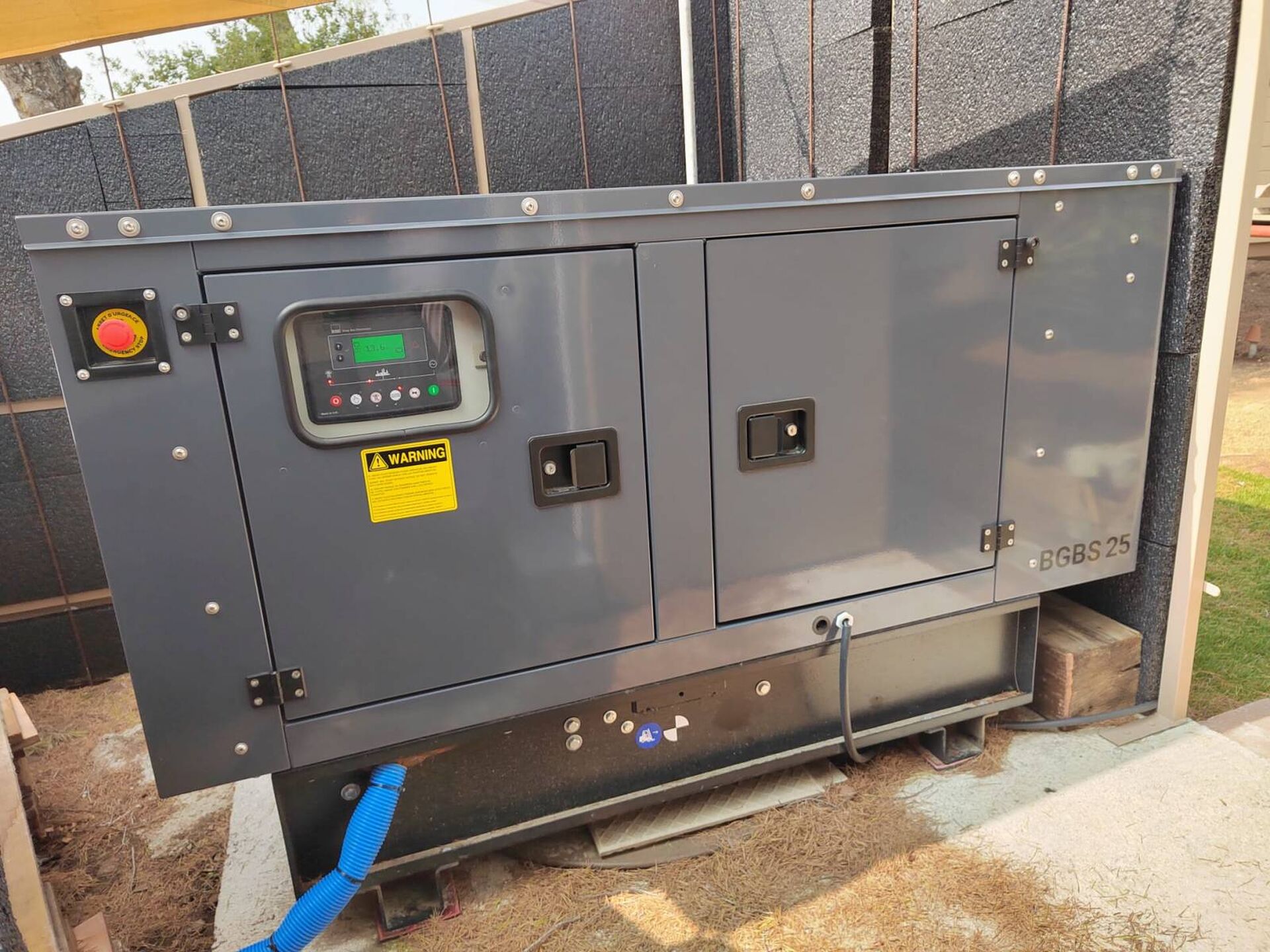 Sud Energie a fourni et installé le générateur diesel de secours pour une villa à Mougins. Celui-ci est destiné à secourir automatiquement l'ensemble de cette propriété. Ce générateur délivre une puissance de 25 KVA ESP.